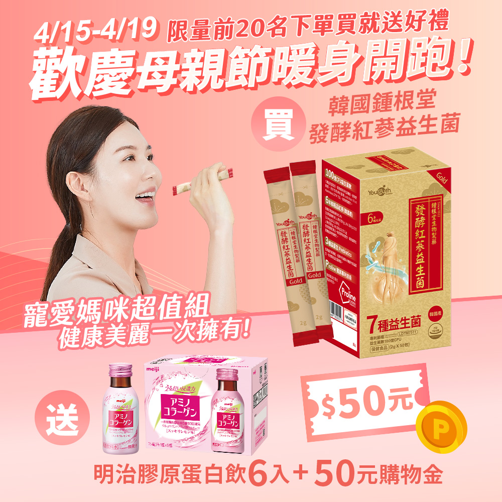 活動期間4/15-4/19下單鍾根堂紅蔘益生菌