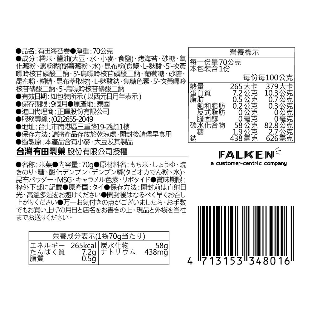★ 精選泰國米+海苔烘烤而成,具飽足感,直接單吃或搭配飲料都很適合
